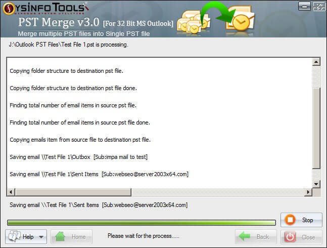 Step 4: The Merge process will be started, this will merge the PST file and save the file at your destination folder.